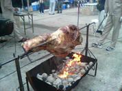 牛の丸焼きのほか、色々と地域の出店があり『やきいも』『手羽先』